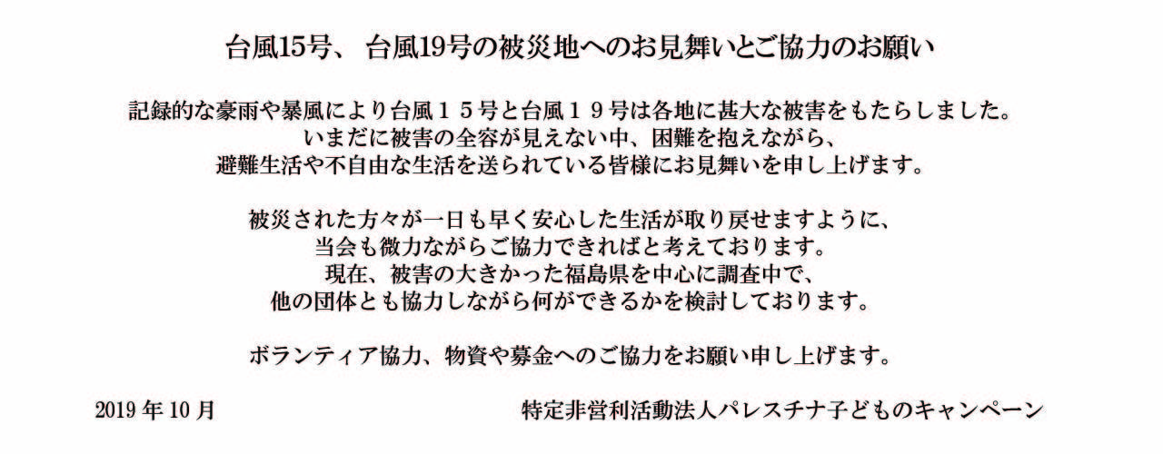 - 新年のご挨拶を申し上げます。本年もどうぞよろしくお願いいたします。 早速ですが、報道されたように、12月末に、イスラエル政府への国際NGO登録の件で、当団体...